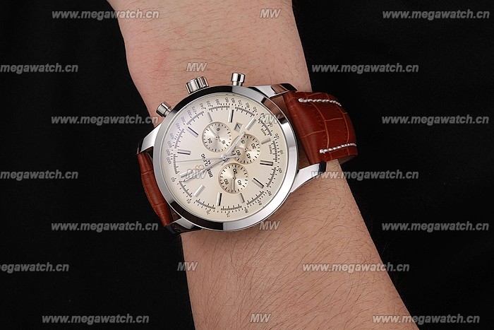 Breitling Transocean Beige Dial Brown Leather Strap Polished Stainless Steel Bezel Breitling Replica