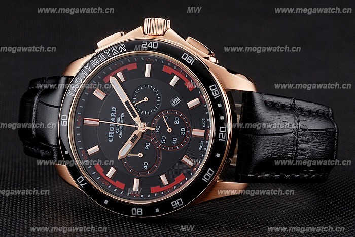 Chopard Mille Miglia GTS Black Dial Gold Case Black Leather Bracelet 1454001 Chopard Replica