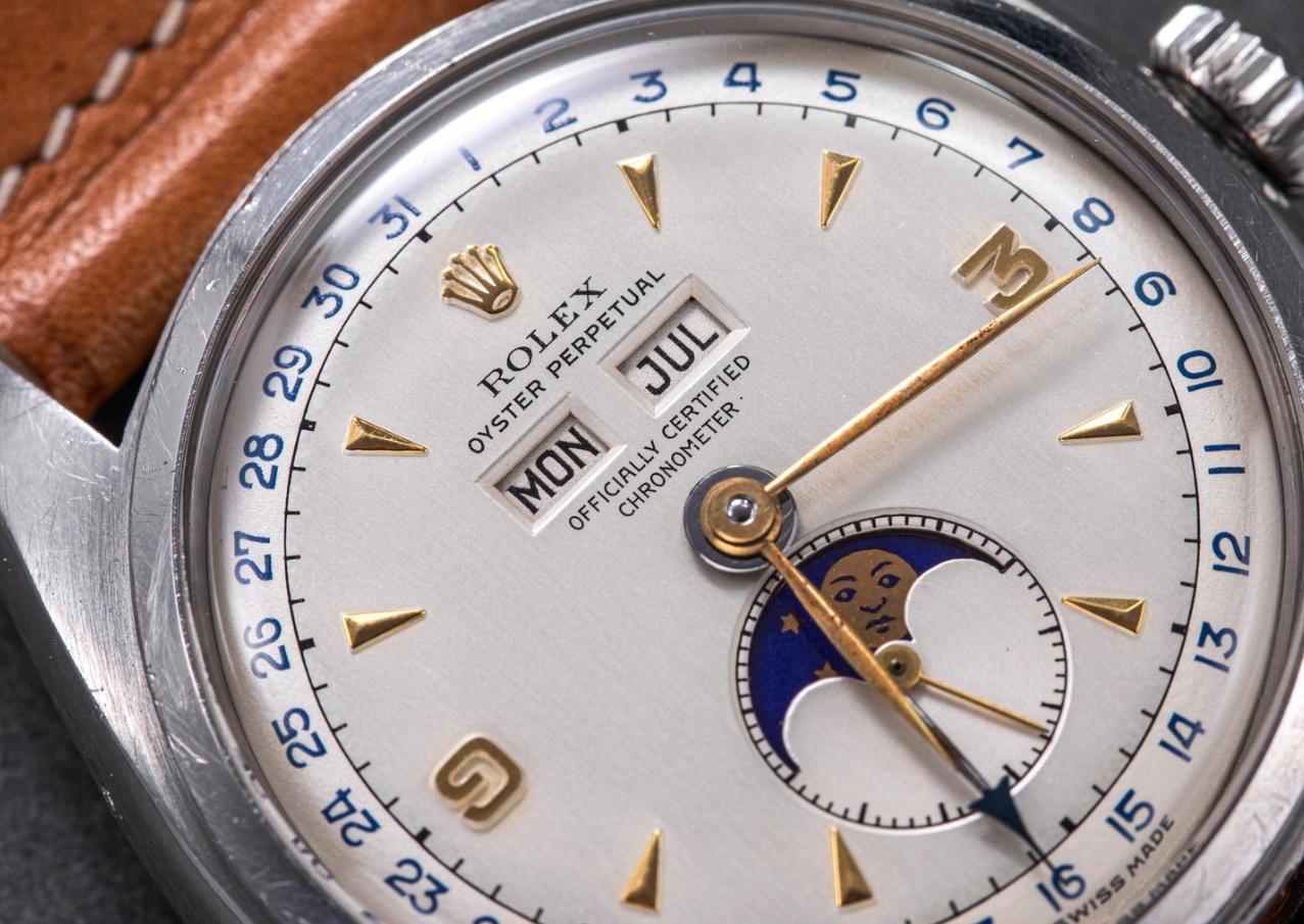 Arguably the most storied Swiss Rolex clone watches in history, more so than the “Paul Newman” Daytona, the ref. 6062 triple calendar is beautiful, and unusually for Rolex, complicated. At the same time, the ref. 6062 boasts the trademark water-resistant Oyster case, something that its closest cousin, the ref. 8171 “Padellone” triple calendar, lacks.