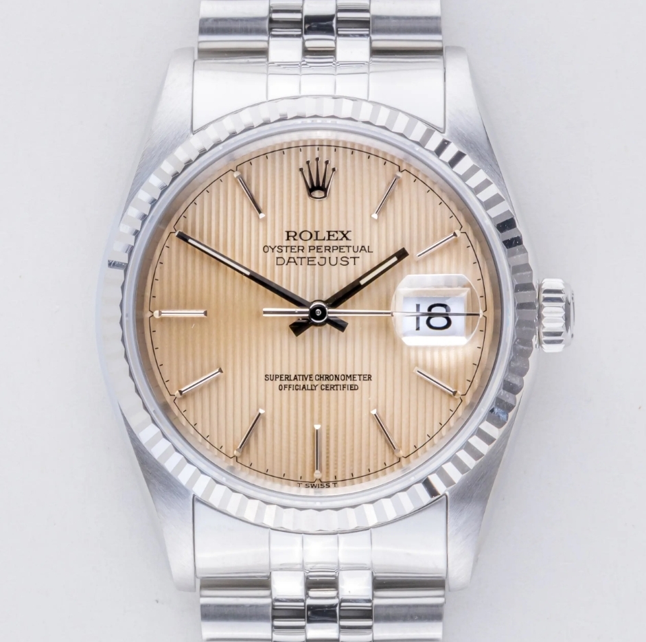 I own a Datejust 1600, a graduation gift from my mother. However, I have often considered getting an additional Datejust, like the 16234. The reference 16234 offers a wide range of dial options, a big plus for this watch. For a long time, the salmon pink dial with applied white gold Roman numerals was my absolute favorite after seeing it in Gerard’s pre-owned Swiss Rolex replica watches shop in The Hague many years ago. And what about the tapestry dial variation? Amazing! My favorite is the ivory dial version with Roman numerals, which has gradually become a creamy color over time.