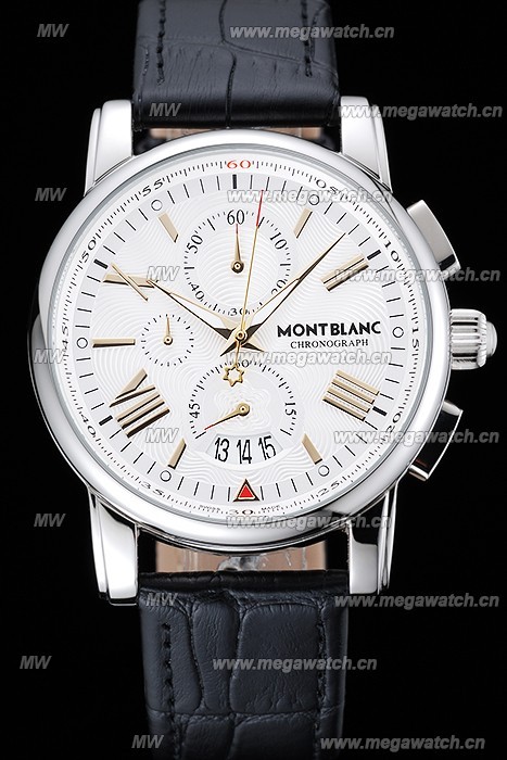 Montblanc Chronograph White Dial Black Leather Bracelet Silver Case 1454114 Mont Blanc Watch Replica
