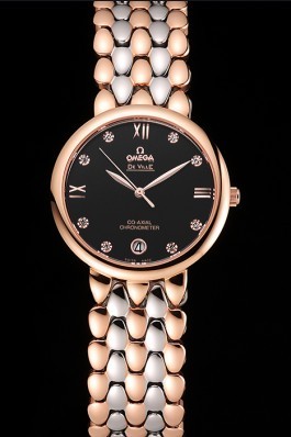 Omega De Ville Prestige Dark Grey Dial With Diamonds Rose Gold Case Two Tone Bracelet Omega Replica Watch