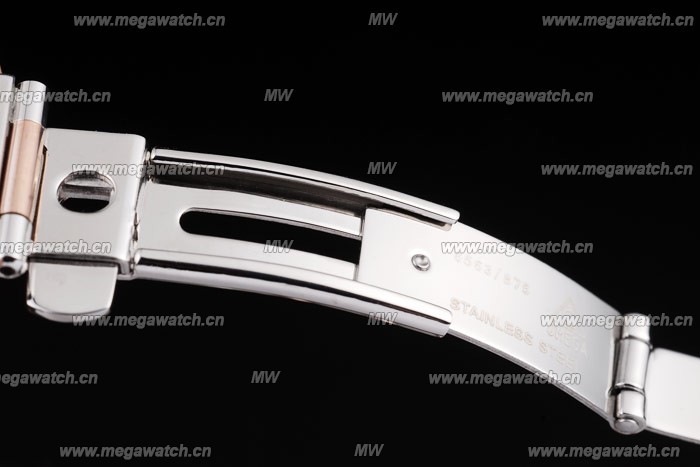 Bracelet Brushed stainless steel and rose-gold link chain bracelet with hidden clasp and Omega logo on top