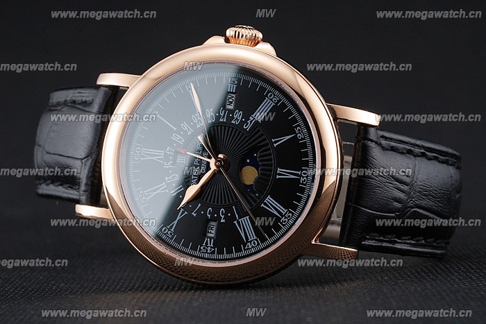 Patek Philippe Perpetual Calendar Retrograde Date Black Dial Rose Gold Case Black Leather Bracelet 1454150 Fake Patek Philippe
