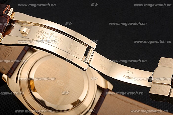 Bracelet Logo and Rolex heat embossed brown crocodile leather strap with logo carved 18k rose-gold plated deployment clasp