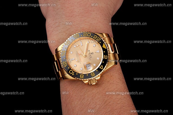 Swiss Rolex GMT Master II Gold Dial Black Bezel Gold Case And Bracelet 1453749 Rolex Replica Gmt